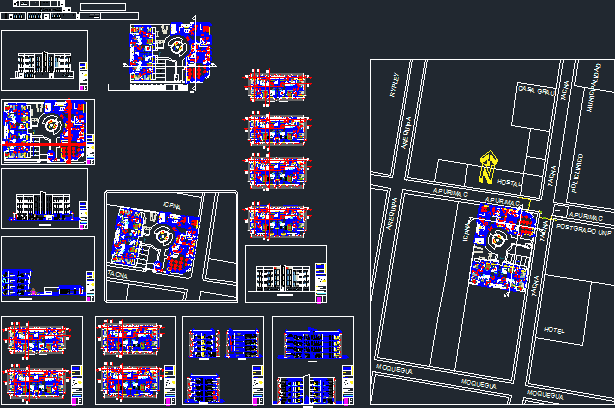 4th floor multifamily restaurant childrens room Piura Peru in the center of the city Plan sections and elevations