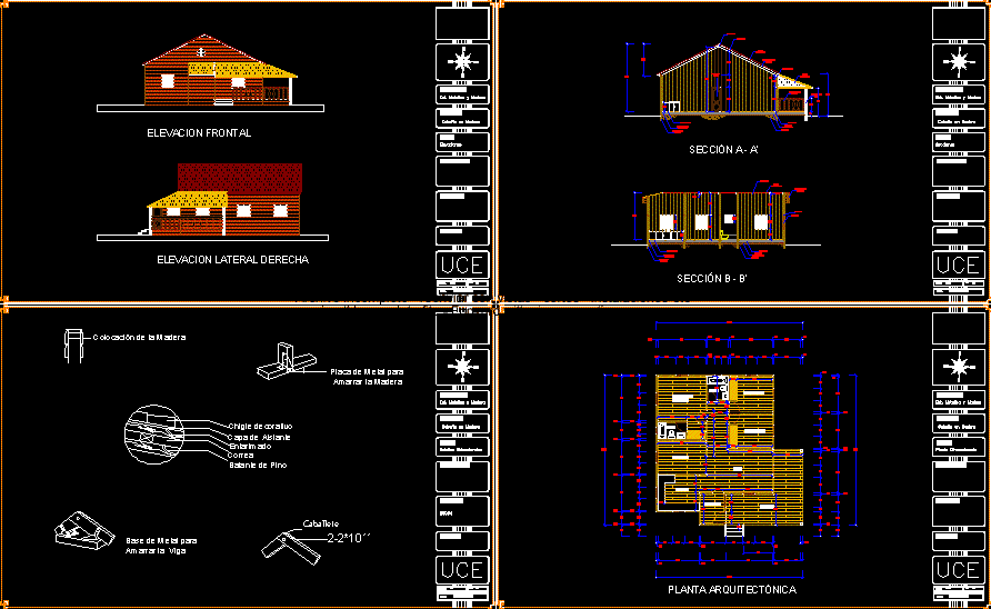 Wooden is in the House plant-scale architectural features Heights two sections construction details and location and location Wooden structures designed for the application of the University of the Middle East