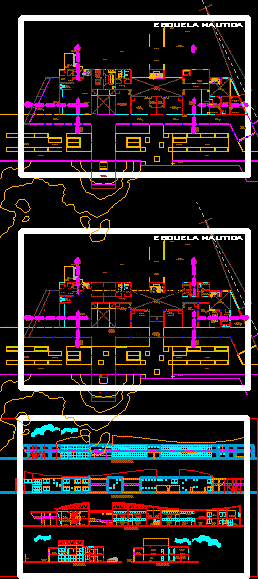 Shows a sea School Puerto Inca Arequipa Peru Recreation Area administrative offices a cafeteria Plus includes two levels section and elevation