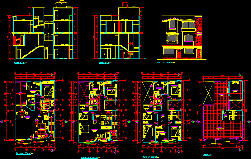 PLANS SECTIONS FACADES AND BEDROOM AUNTIES RENTAL IN THE SECOND AND THIRD PHASES