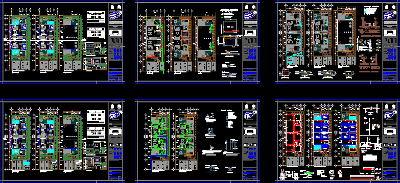 Architectural details plumbing electricity water and plumbing structural drawings with 4 apartments on Level 2