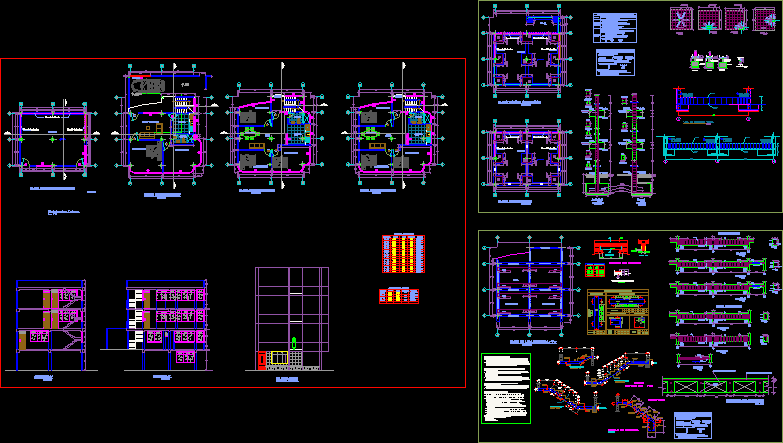 site plan - structures - foundations - stairs - details lightweight sheet - elevations - sections