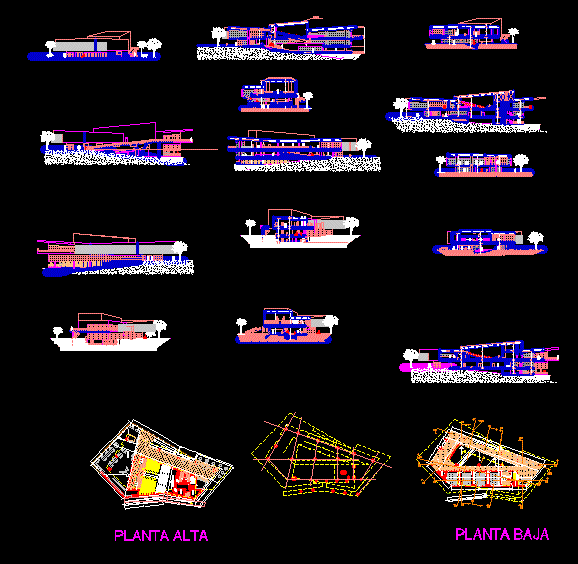 Cultural Center project for Santa Cruz de la Sierra Puerto Surez detailed floor plans furniture dimensions sections borders details