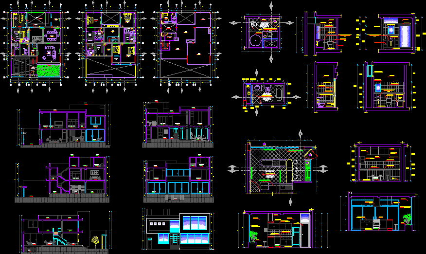 Detached house plans sections elevations and detailed constructive