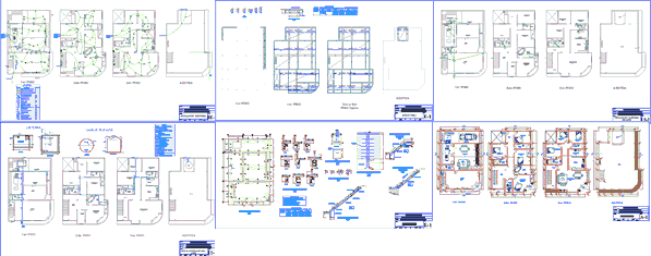Home design 3 story flat structures with elevations and sections electrical and plumbing in Como so