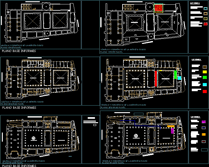 Cusco La Merced temple the temple floor plans of each level with Restore and restore operations