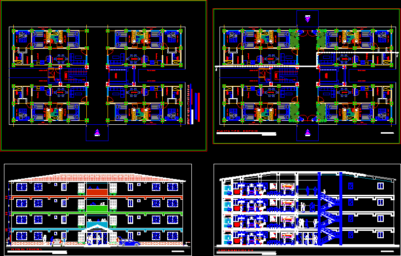 PLANS SECTION FACADE SYSTEMS BUILDING TYPES 4 LEVELS 4 APARTMENTS BY LEVEL AND BLOOD CIRCULATION RELATED