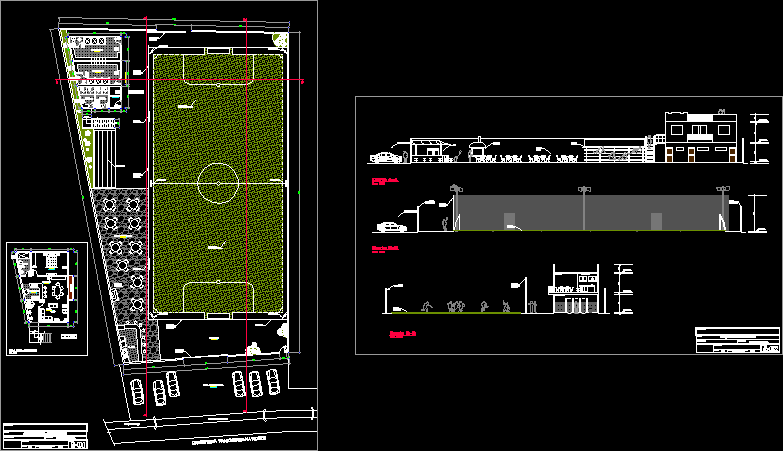 PERIMETER FENCE FOOD COURT TRIBUNA AND SERVICE AREA WITH FOOTBALL FIELD THE SECTIONS OF THE ARCHITECTURAL PLAN THE TRIBUNE