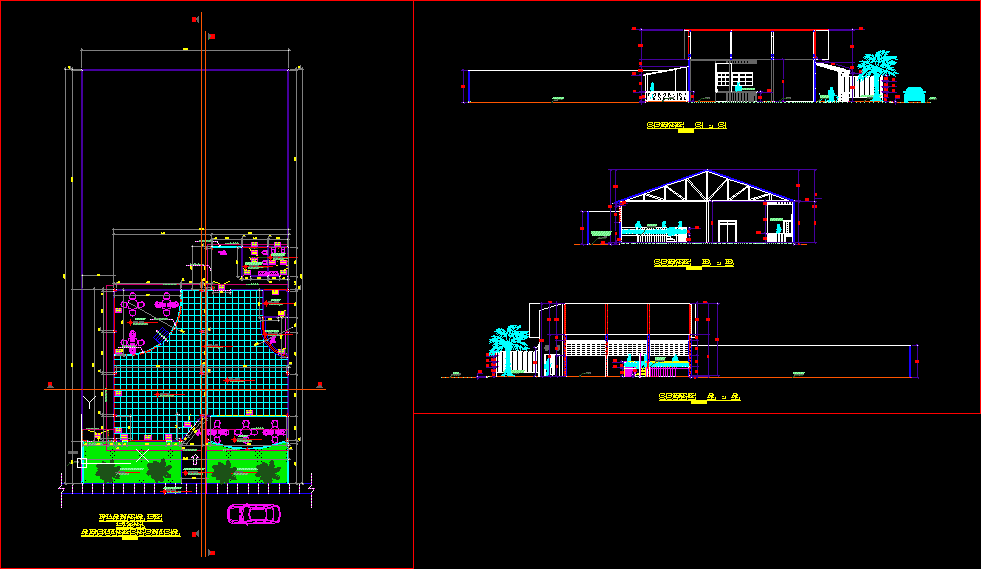 Ecological region tropical architectural plans for wood bar and room sloping 3 sections and 2 Heights The complex is designed for hotels or tourism tropical