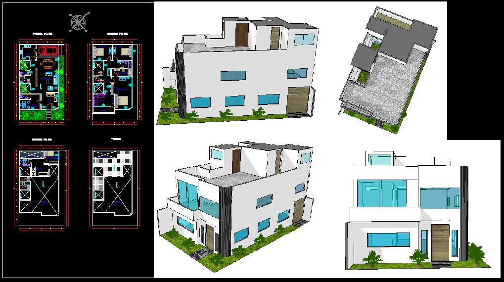UNIFAMILY HOUSE IN WHICH IT RESIDES FULLY DISTRIBUTED THREE LEVELS THE FRAME SECTION PLANSROOF PLANAND 3D PHOTOS