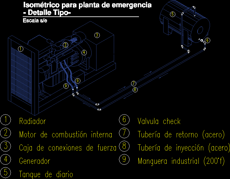 The fuel tank stores the details of the plant in isometric view with the emergency