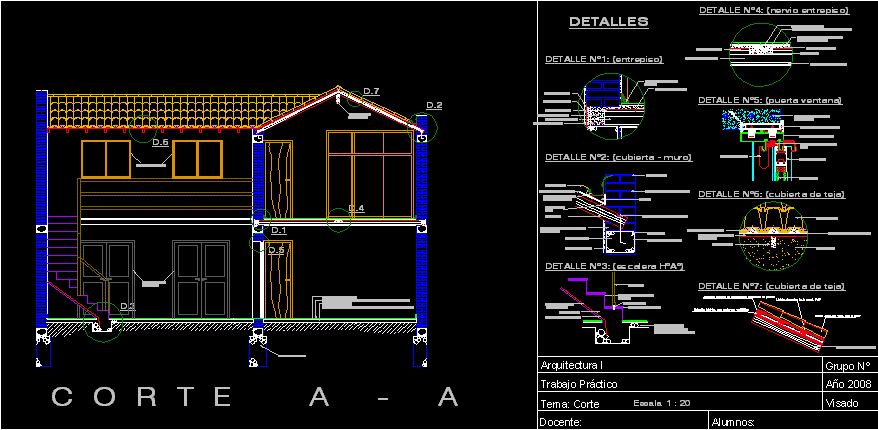 Scale 120 students at two plants in the constructive details of the housing for the partition that contains