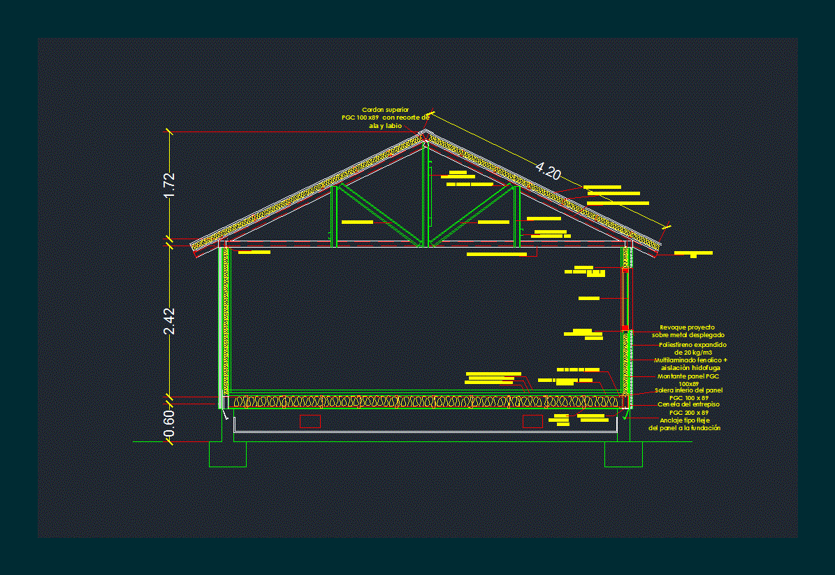 Steel frame ceiling and the floor wall detail DWG 1 full field 100 ESC