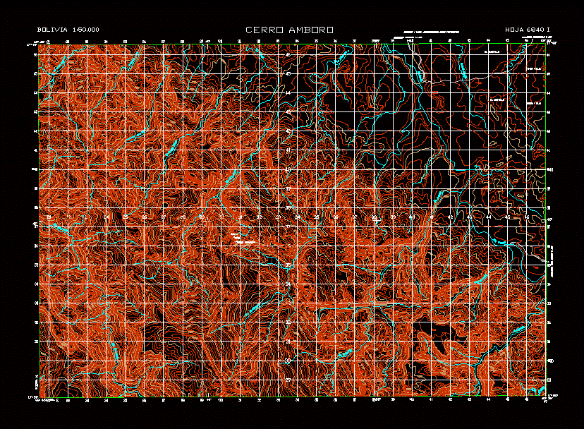 Projection UTM datum psad56 zone 50000 topographic sheets in DWG format to 1 scale Bolivia South