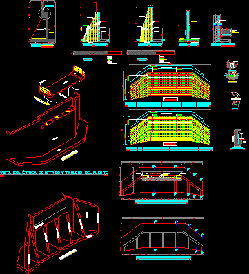 Structural design at Bridge River 30 m long score - 7 plates X and details - bridge at the basic level and the level of support stirrups - the basics L3 - Geom reinforcement L 30 m height vertical profile of L2 in the view - plant view the plant