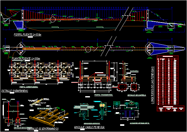 Suspension bridge project - plants - sections - elevations - Details