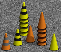 Yellow ang orange safety cones with reflective material