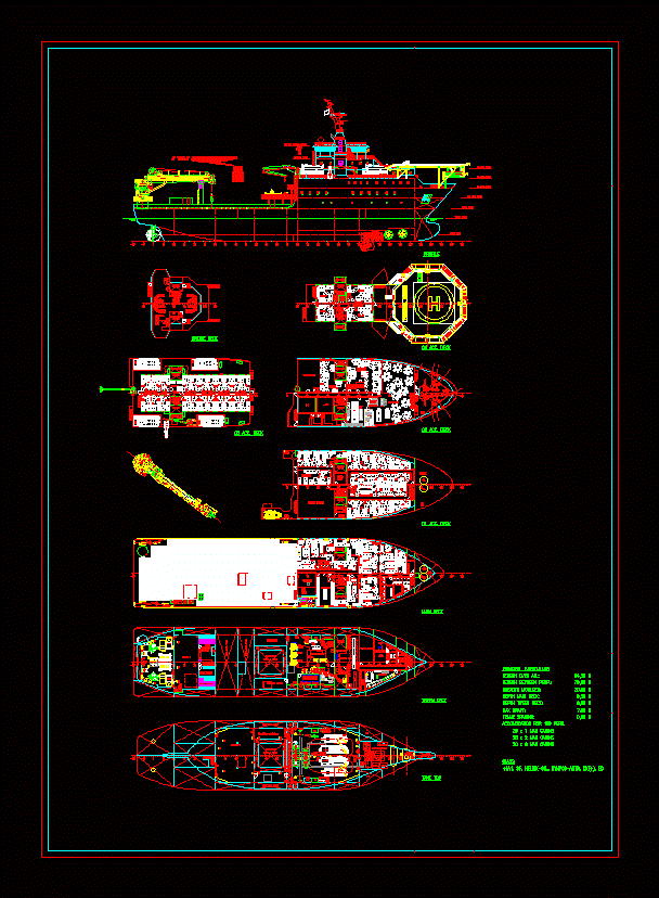 Dynamic positioning support activities oil and commercial construction Costa out includes general arrangement with DP largest boat class under the front deck second deck bridge engine room housing accommodation cross-sectional longitudinal and Fr