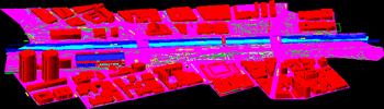 In the center plane of the 2D-and 3D-Santiago de Chile - historic and new buildings