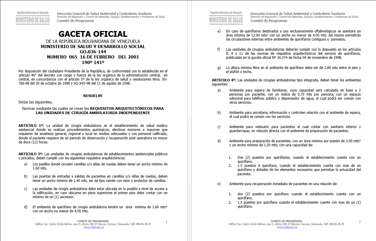 Standards for ambulatory surgical ambulatory surgical unit by which arquitectonicos independent independent requirements are created
