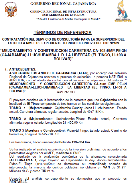 > Roadworks analysis Consultant qualifications cajamarca peru