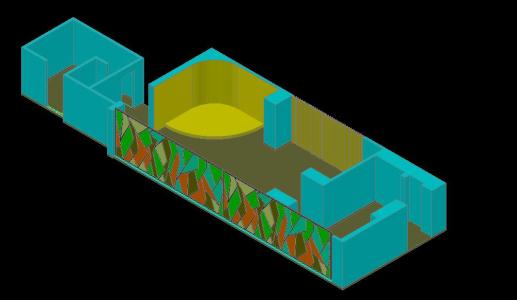 3D space coffin a waiting room vigil chapel bathroom Drywall ceiling with stained glass and irregular shapes