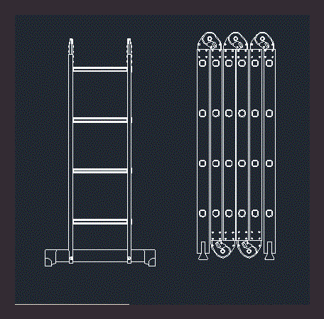 Prepared in Draftsight stairs Main page view as seen in an attic ceiling and side view